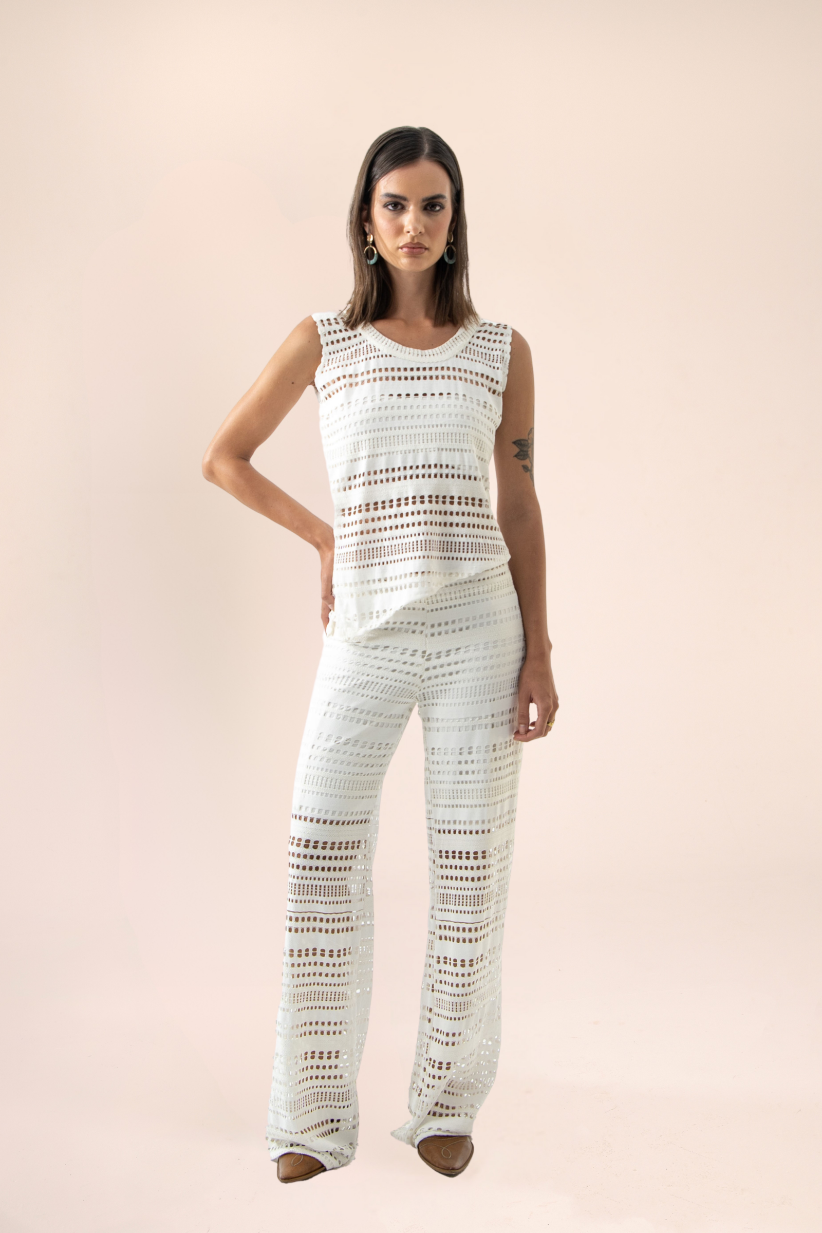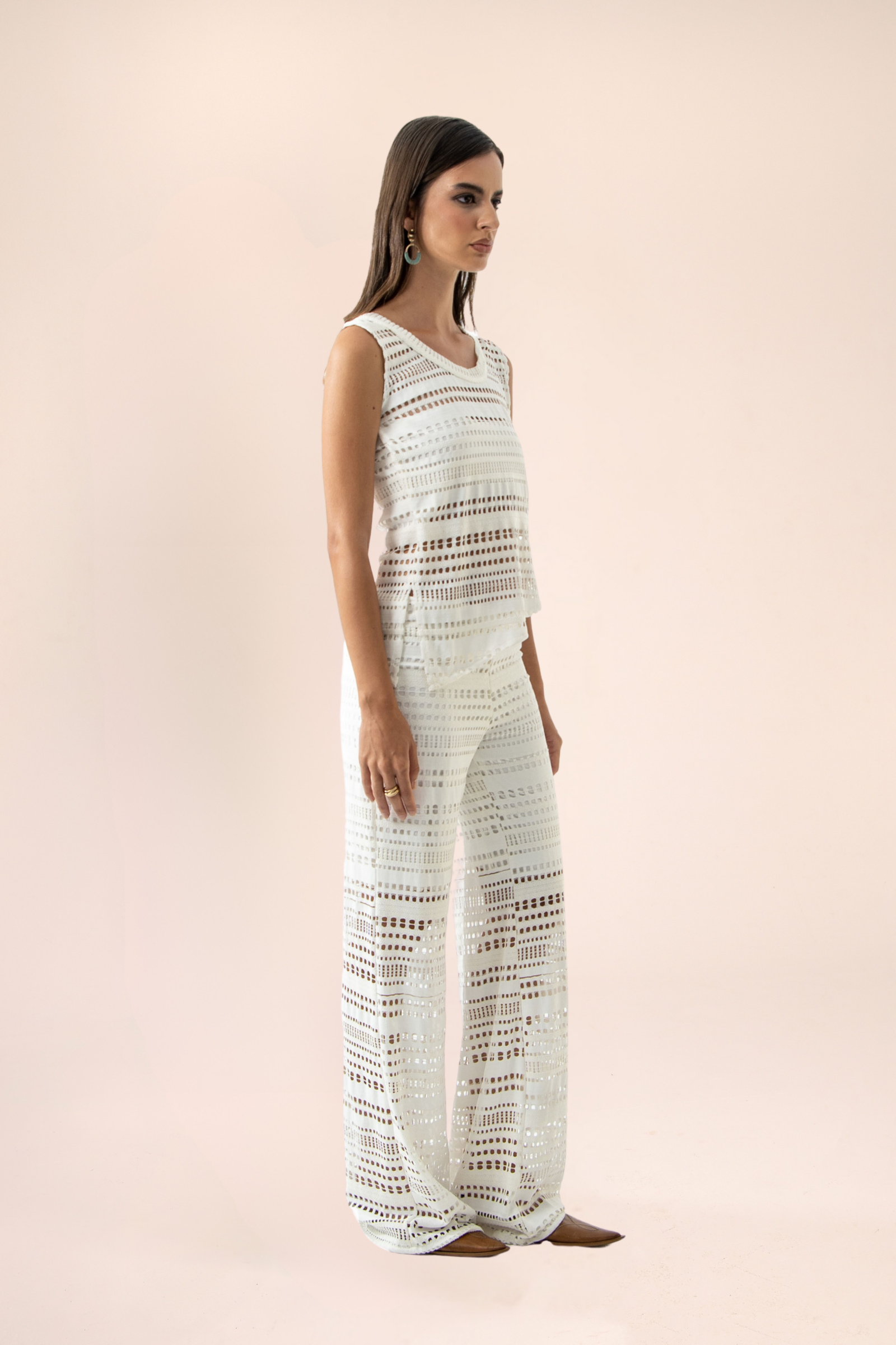A refined set featuring a top with a subtle side slit paired with straight‑leg pants for a streamlined silhouette. Ideal for both elevated casual and smart occasions, it combines comfort with effortless sophistication.