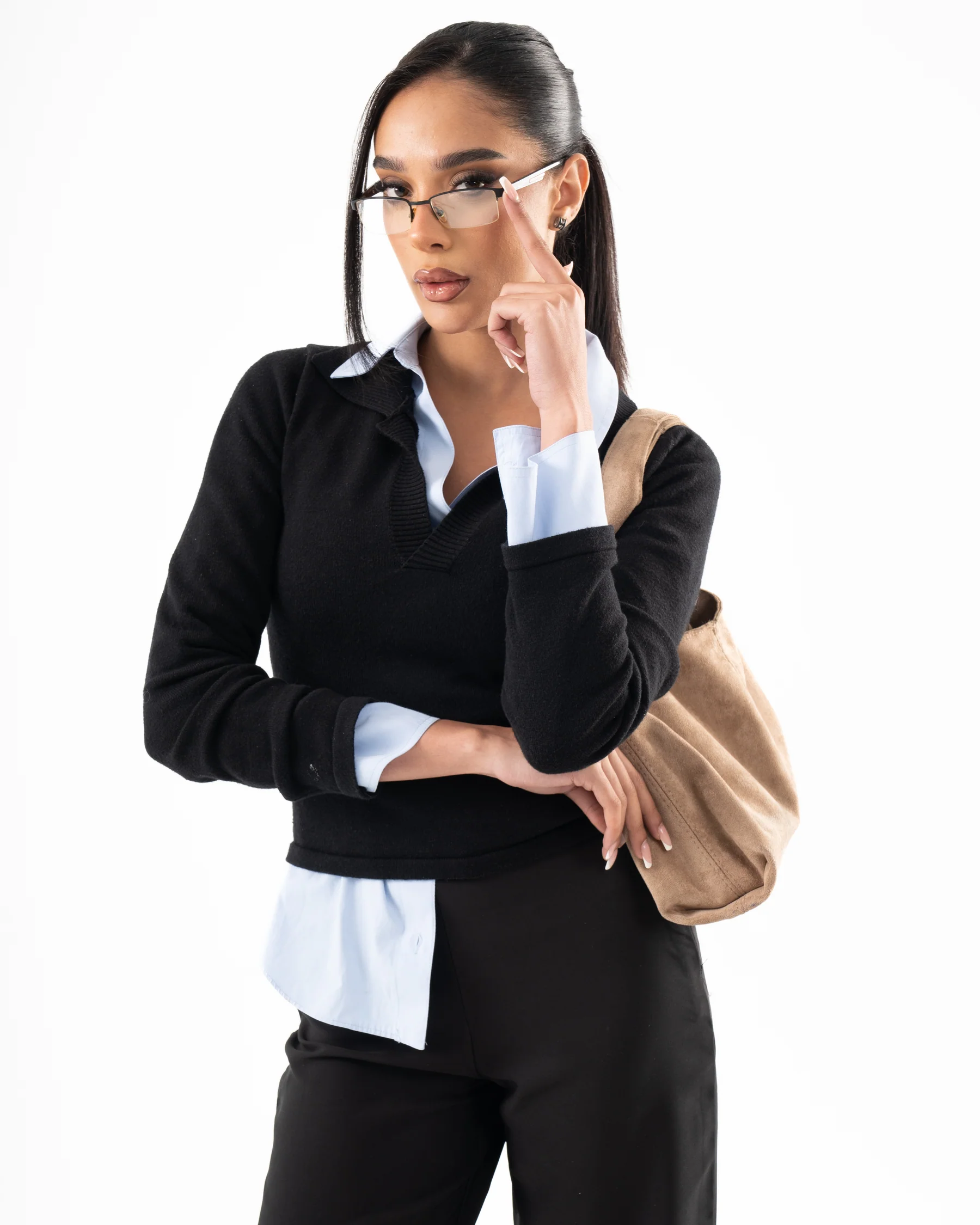 | Black Collared Knit Top A refined everyday essential crafted from a soft, lightweight knit. Designed with a subtle collar for added structure, this piece balances comfort and polish with ease. Perfect for layering or wearing on its own, it transitions seamlessly from day to night. A timeless staple made for effortless styling. |
